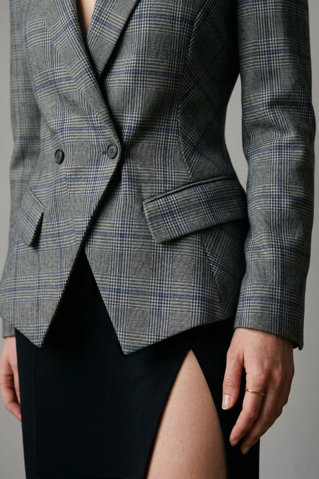 Jacheta Marchia reprezintă o piesă de impact, cu o siluetă sculptată, umerii foarte evidentiati și talia cambrată. Lungimea scurtă si croiul feminin permit purtarea acesteia in outfituri versatile cu rochii sau fuste creion pentru un look elevat, dar si cu jeansi penntru un look relaxat. Finisată cu clape frontale oblice, butoniere si nasuri.
